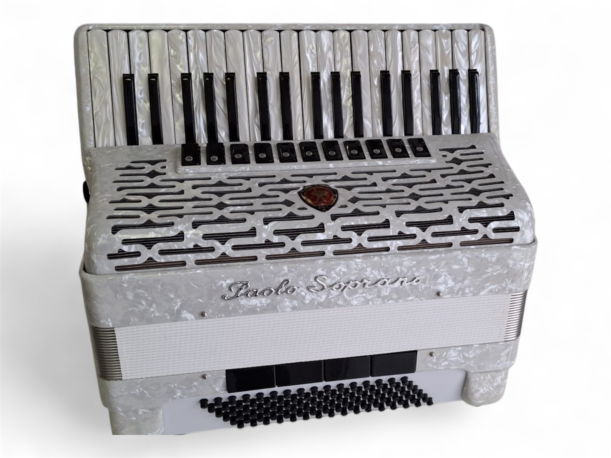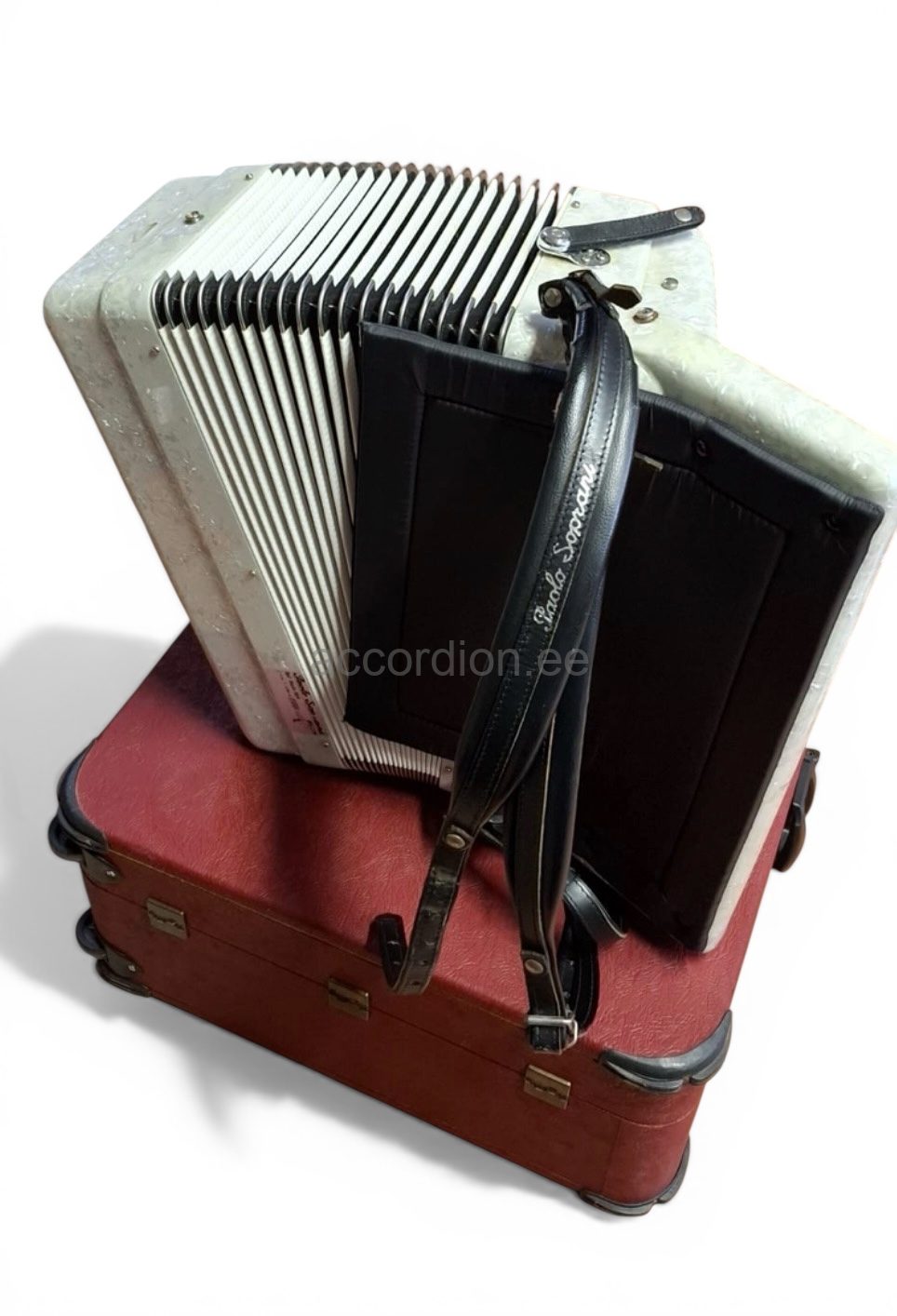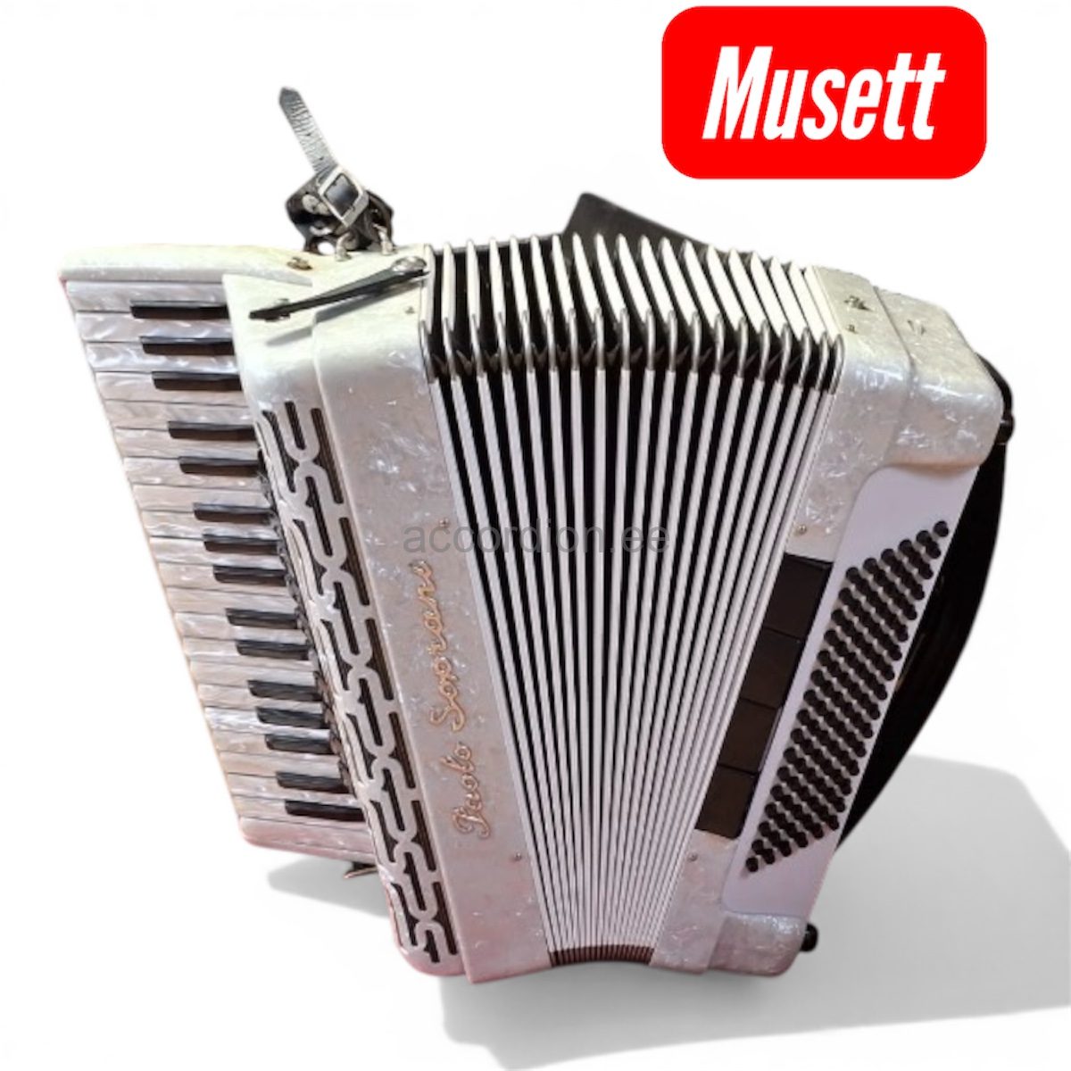 Vanima Itaalia akordinifirma PAOLO SOPRANI heas korras kasutatud akordion 96 bassiga. Edeva välimusega, valge korpus, must lõõts valgete kantidega, praktilise F-f ulatusega kasutatud akordion. 4 koori paremal ja 5 koori bassides. Akordionil on sädelev musett häälestus ja häälestus on kontrollitud enne müüki.