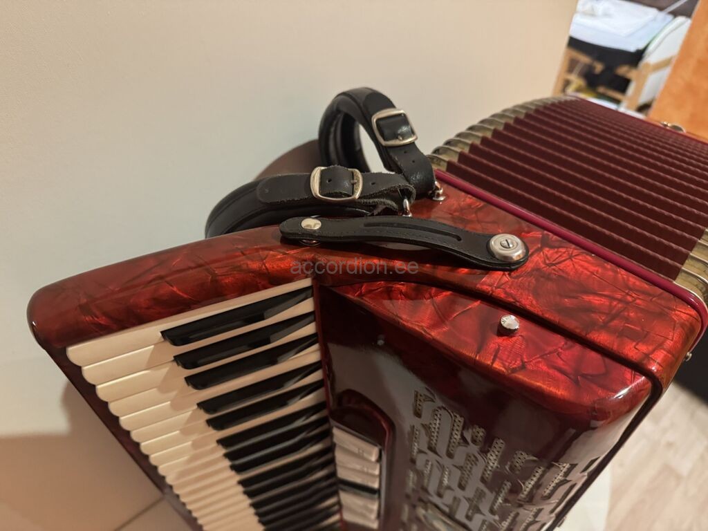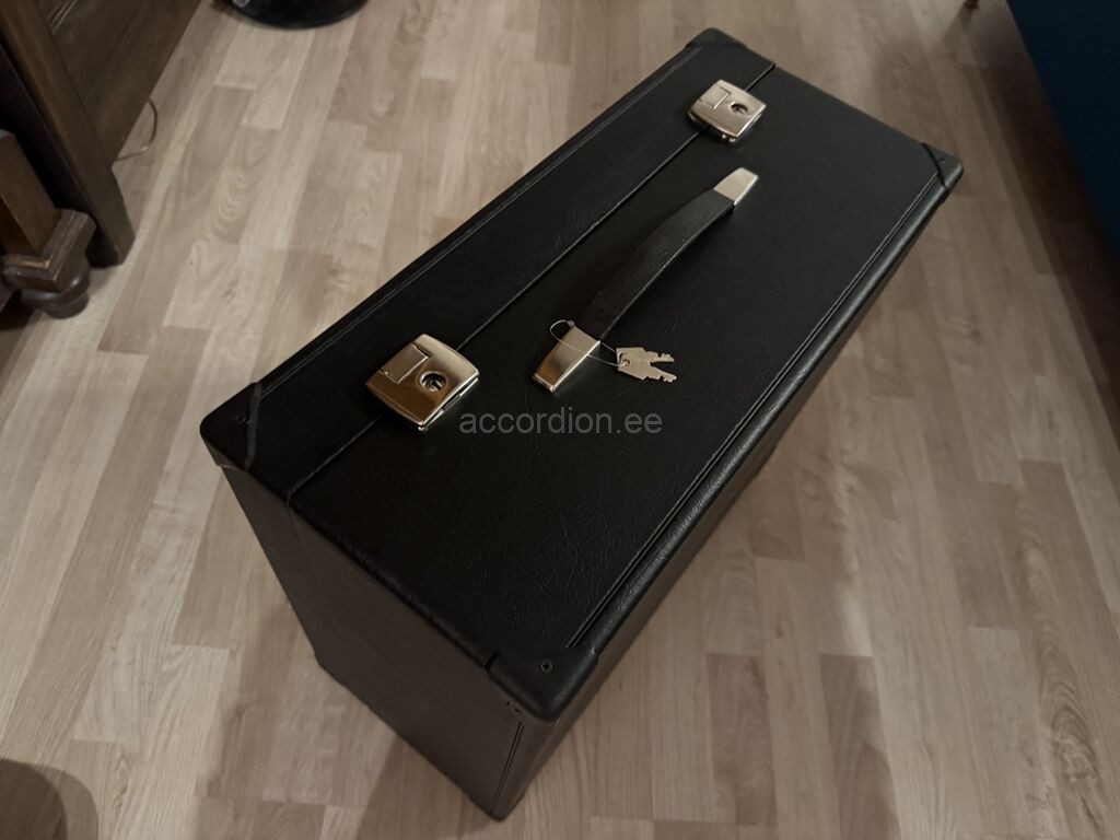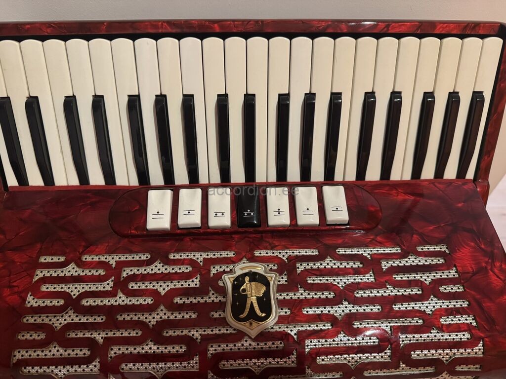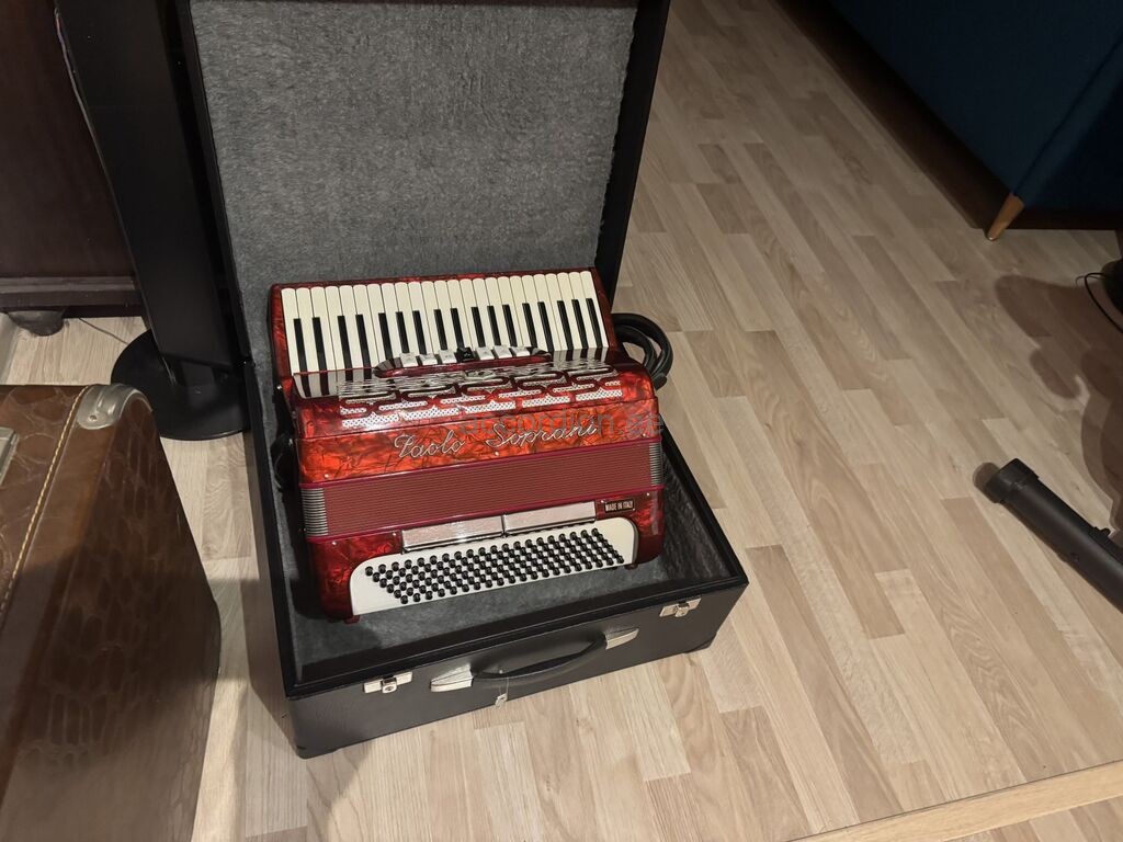Kasutatus Itaalia akordion vanimalt ja kuulsamalt Itaalia firmalt Paolo Soprani. Akordionil on 41 klahvi ja 120 bassi. Koore on paremsl käel 3 ja bassides 5. Registreid paremal 7 (kaks dubleeritud) ja bassides kaks. Akordionil on lõõtsakaitse. Ilus, puhas, korras pill.