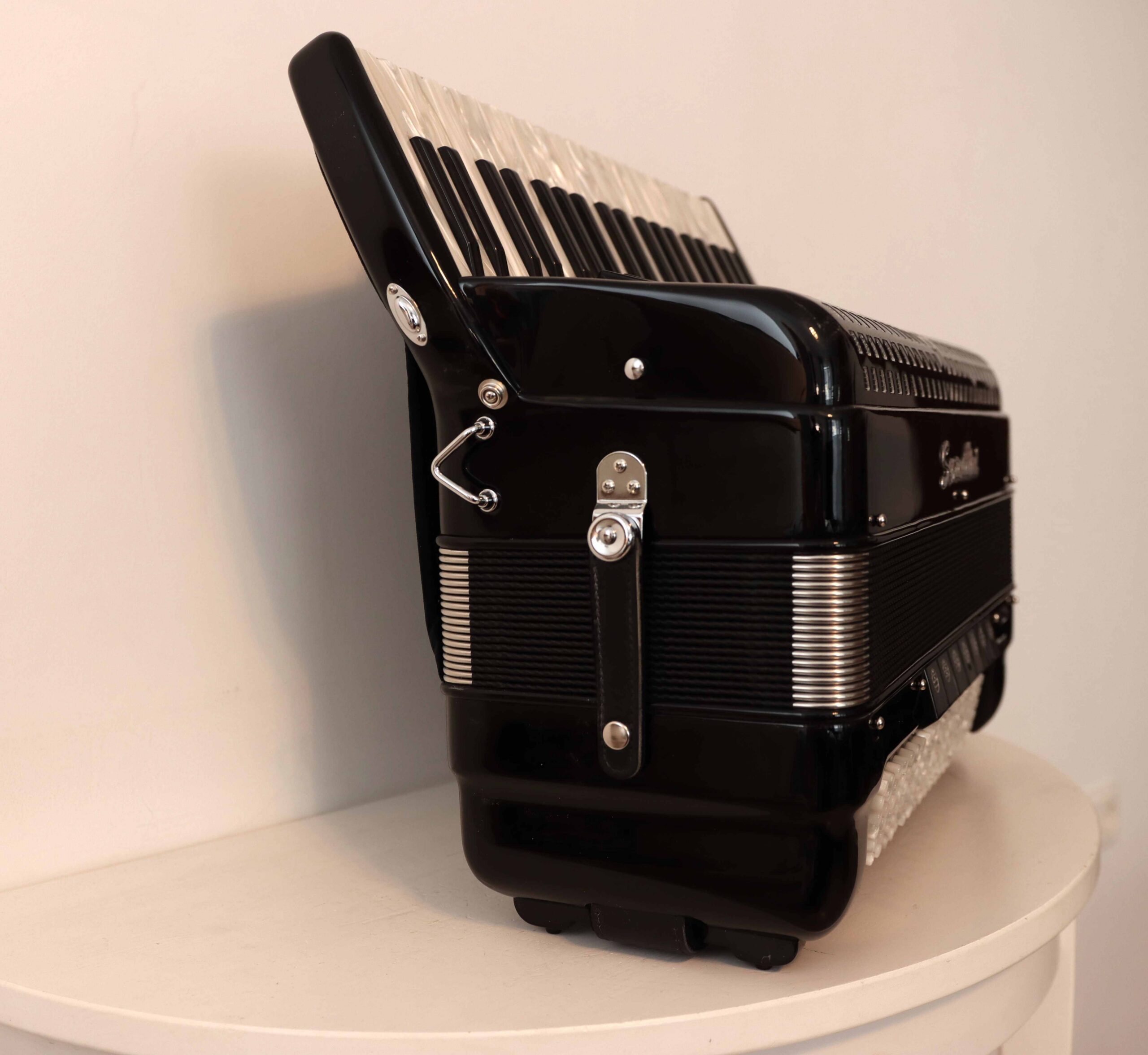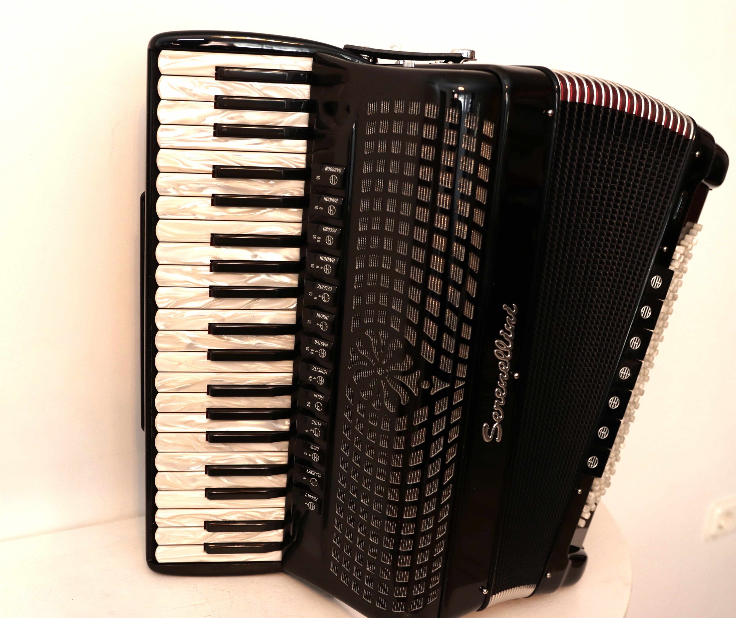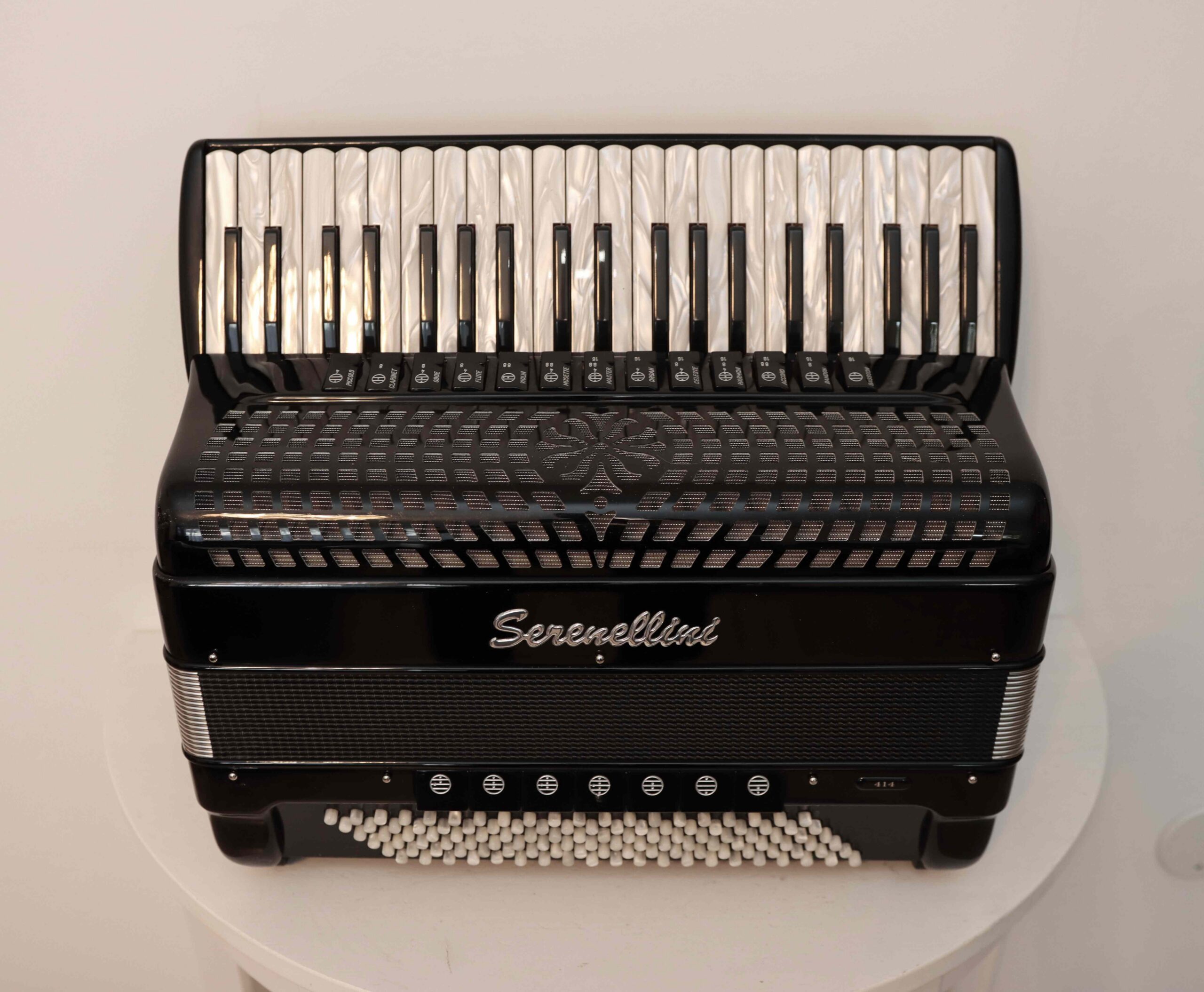 Tuntud Itaalia firma SERENELLINI täismõõdus akordion. Akordionil on 41 klahvi ja 120 bassi. Paremal 4 koori ja bassides 5 koori. Registreid on 13 +M paremal ja 7 bassides. Valged klahvid ja bassinupud on pärlmutter imitatsioon. Akordionil on klassikaline häälestus LMMH (440Hz ja piccolo register) Lõõts on ilusat punast värvi. Komplektis on lõõtsakaitse, pehmendustega õlarihmad ja tugev transpordikast LUX ratastega